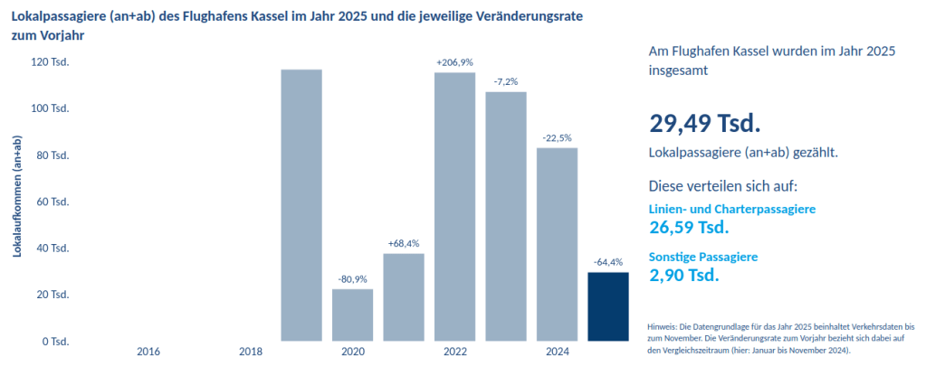 zu: Passagierzahlen Airport Kassel sinken 2025 weiter aus dem offiziellen ADV-Dashboard:
